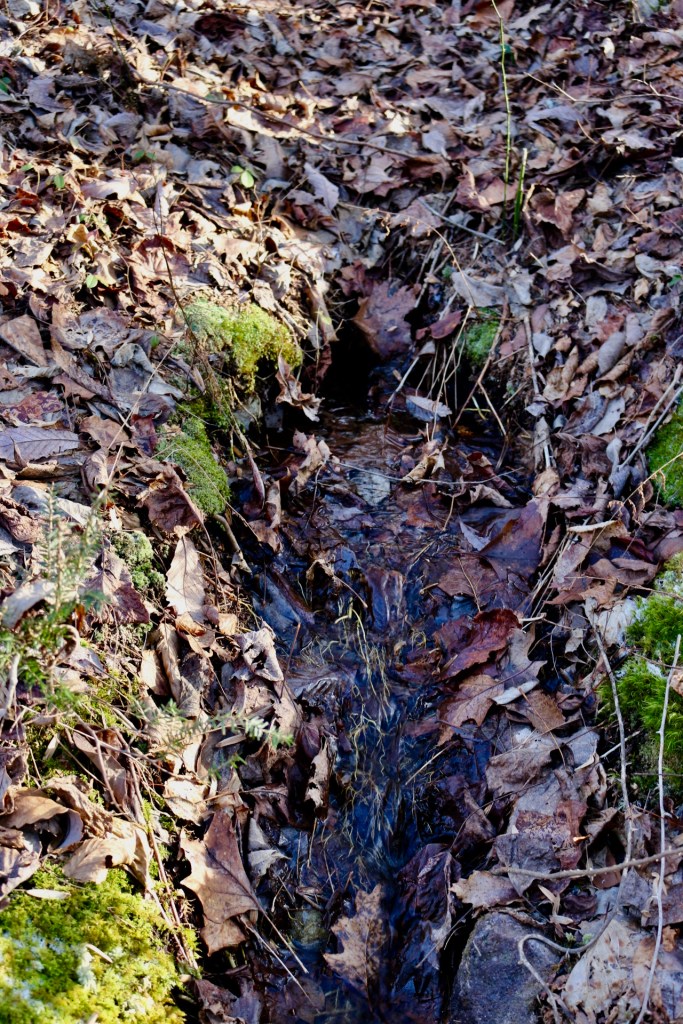 I am enchanted by water trickling out of the earth. Perhaps it is primordial, this deep evolutionary connection terrestrial animals have to water, a calling back to the first element. Or perhaps it is simple poetry — these two disparate elements, earth and water, one all solid and form, the other shapeless and incorporeal, mingling below sight. We walk as though at its surface the Earth is solid, but it is not. In reality it is rotted bedrock and loose sediments mixed with decayed organic matter. It is full of hidden voids and channels where shapeless water easily infiltrates. The interface of earth and water creates a dynamic dance. In this zone of essential elements, water seeps into the porous earth, finding what paths it can, filtering down through humus and loam, sand and stone. When the path is blocked by hard rock or high water, it flows sideways. And then, where the water permeates high, it reappears as a spring seeping out of the hillside.