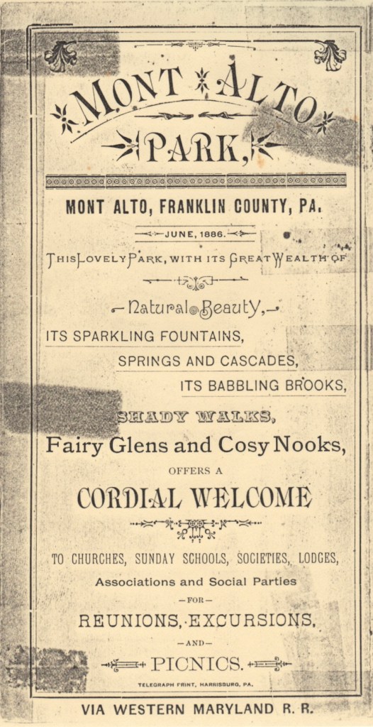 Tarburner Spring is noteworthy in particular because it had an evocative name and was advertised as a remote destination for excursionists a hundred and forty years ago. But there are dozens of springs much like this one up and down the spine of South Mountain. This is the place on a landscape where rivers begin and this mountain splits its water between the Susquehanna and the Potomac Rivers. I have always considered “headwaters” to be a propitious word. The beginning of water. Although water is described as renewable, an endless cycle, this is the place the story begins. A small spring the width of one hand flows downhill gathering mass and momentum as it becomes a creek and then a river, which not only shapes the physical landscape, but also provides water necessary for human cities and industries — in sum civilization. In the realm of economics, we say that water supply is an important landscape service of forested mountains. And in fact, that is one strong motivation for protecting South Mountain today, because the water only runs clear and clean if the forests and soils are intact. Where they are, the mountain is a sponge that releases a steady flow. Water trickling out of the earth, on a remote mountaintop, is a small process happening largely out of sight, yet of such great import.