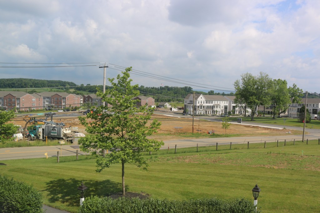 This loosened the earth for city infrastructure–water in, sewage out, underground cables, stormwater inlets. A veneer of pavement and curbs and the shape of a neighborhood, which was designed on a piece of paper in a different county, begins to appear on the erstwhile farm. The first apartments and townhouses started going up that June.