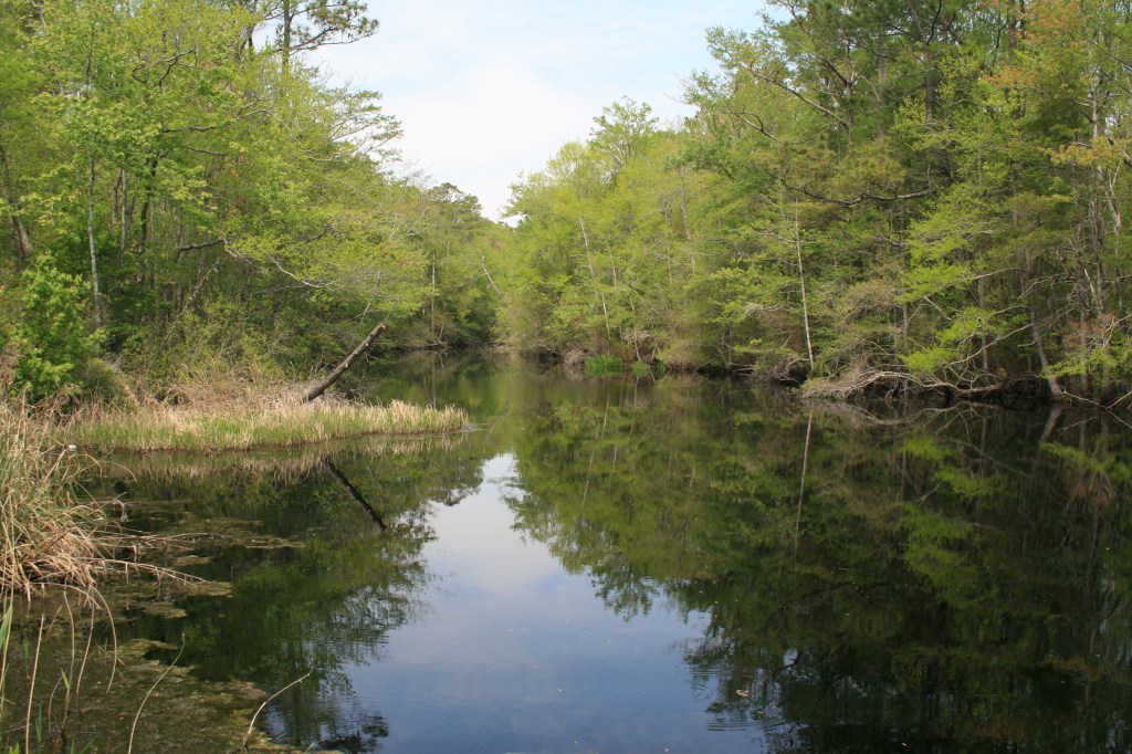 Small changes in elevation, drainage, or salinity yield a surprisingly large variety of ecosystems. Pocosins, hardwood swamp forests, white cypress swamps, bogs, freshwater marshes, brackish marshes, and open water occur across the peninsula. Three feet above sea level is a hill in these parts. Freshwater streams in this low, coastal landscape languish with black tannic tea. The edges are not so much a bank but rather swamp forests standing in water. Where the ground rises up a foot or two, dense forests grow on earth you can walk on.