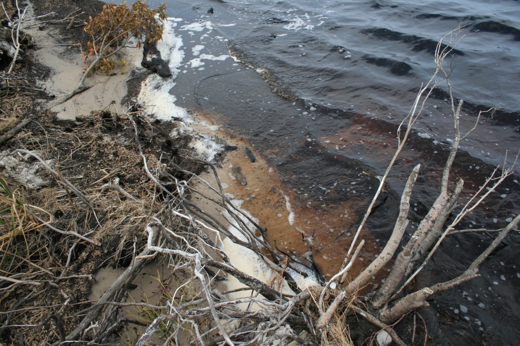 In order to pave a road here, sodden soil is trenched out and heaped up a few feet above the water table to provide land dry enough for gravel to be hard packed. Point Peter Road is a hard capped berm that resists erosion better than the soft peninsula. Up and down the shoreline, wind-thrown waves eat away at the land. Dare county can lose ten feet of land every year here.