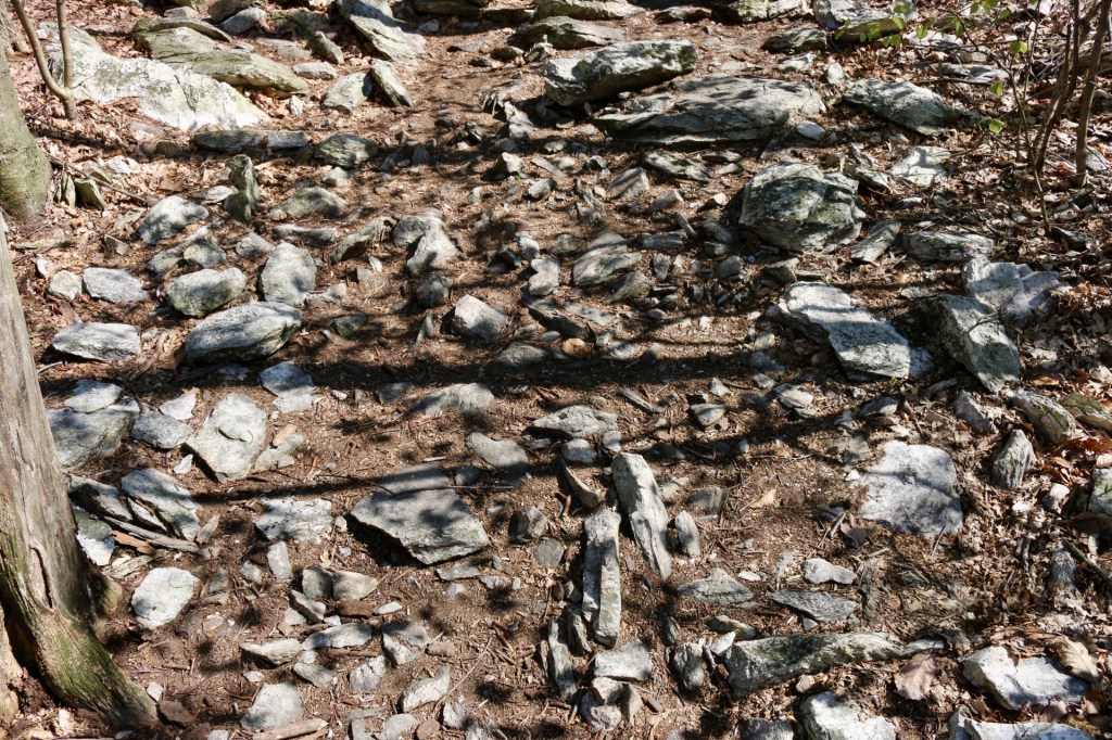 The whole path, but a mile and a quarter, is a connector to the Appalachian Trail. The eponymous rocks, 500 feet above the parking lot, are halfway in. The ascent to White Rocks takes only a half-hour at a leisurely pace. Although short, the trail climbs through definite zones.