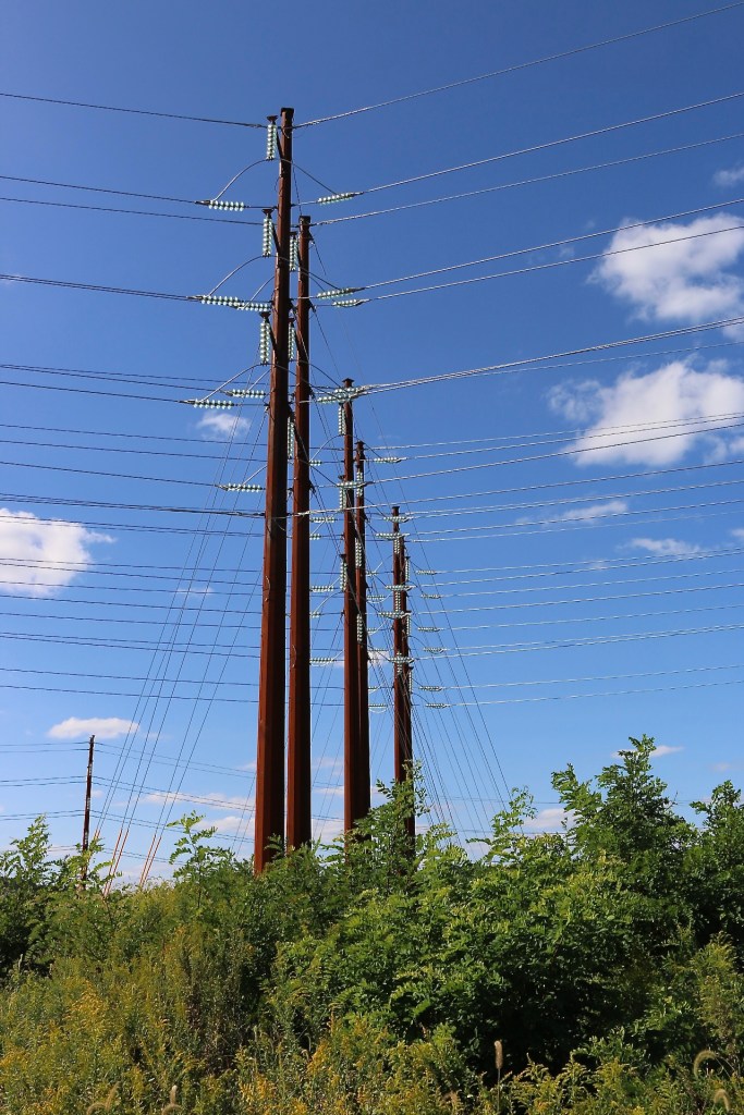 Next to where the train track crosses over the pipelines, at the edge of the development, is a massive electrical substation. There is something about electrical stations that is futuristic, all hard-edged and metallic. When we moved in it was already large. In the last three years it has tripled in size. New rust-colored towers guide ever more high voltage lines in. Most powerlines are regional infrastructure, but connect into a national grid. PPL Electric Utilities built this station to further serve the growing parts of the metro area because electricity is essential to modern cities. Nowhere is the tangled web of infrastructure more obvious than the wires heading into and out of this growing electric station.