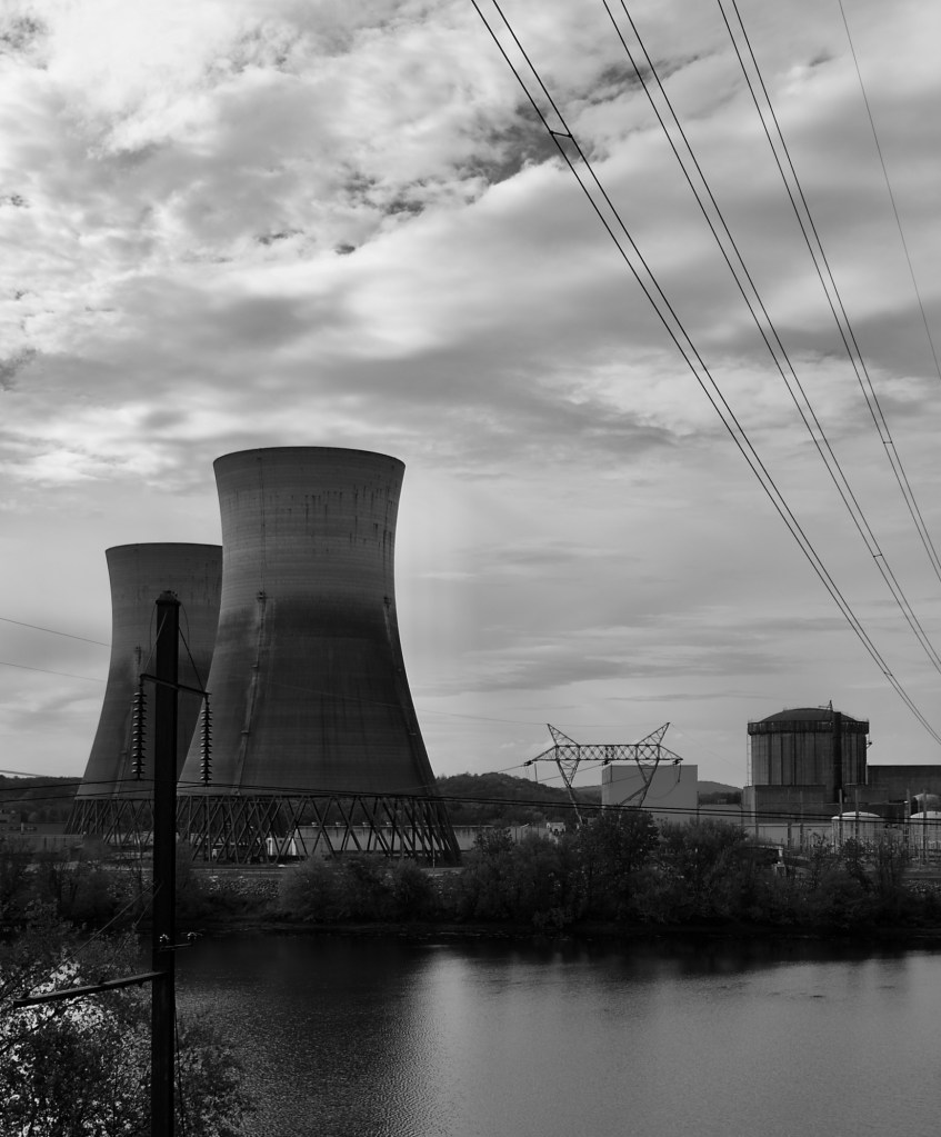 The power that came through here was originally supplied by the Three Mile Island Nuclear Generating Station ten miles east. TMI, as it is called locally, was actually two side-by-side systems on an island in the Susquehanna River. In 1979, Reactor Two famously malfunctioned after just three months of commercial operation in the worst civilian nuclear power accident in the United States. TMI1 continued to generate electricity until 2019, when it was shut down for cost reasons. Across the river from the sleeping nuclear plants, the Brunner Island Steam Electric Station burns fossil fuels and feeds the wires now.